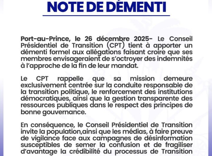 Le Conseil Présidentiel de Transition (CPT) a formellement rejeté, ce jeudi, les informations laissant croire que ses...
