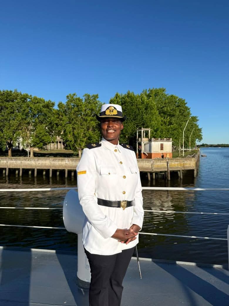 Grâce à ses excellents résultats académiques et à son comportement exemplaire, elle a été sélectionnée en 2022 pour bénéficier d’une bourse d’études à l’École navale militaire d’Argentine. Elle y a suivi une formation spécialisée exigeante, marquée par la rigueur et un haut niveau de discipline. Au cours de son parcours, elle s’est distinguée par ses qualités de leadership, ce qui lui a valu d’être nommée brigadière de mérite dès sa quatrième année, avec des responsabilités en matière d’encadrement.