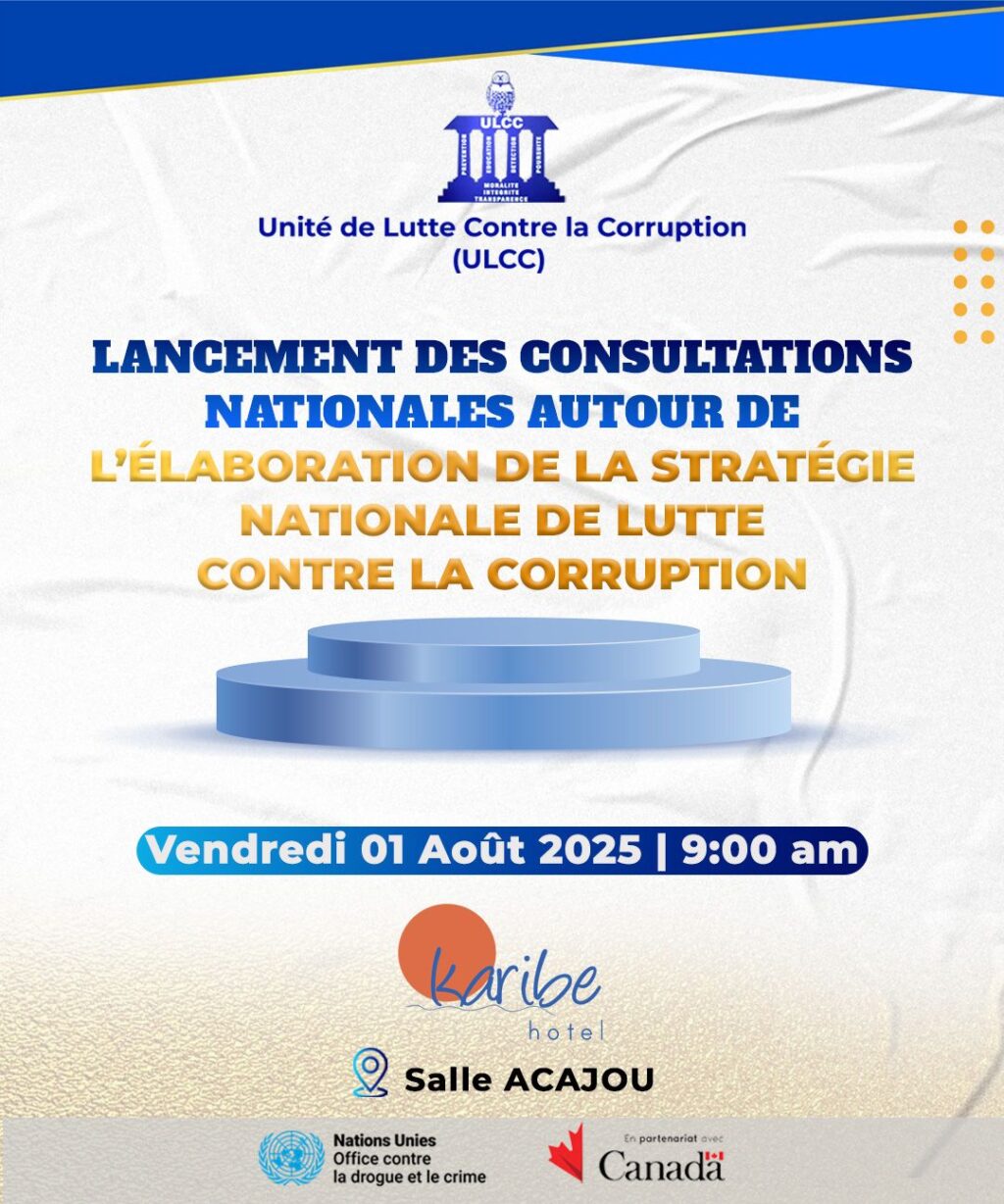 Le 1er août 2025, à la salle AKAJOU du Centre Caribbé, l’Unité de Lutte Contre la Corruption (ULCC) a lancé les consultations nationales pour l’élaboration de la nouvelle Stratégie nationale de Lutte contre la Corruption (SNLCC). Cette initiative marque une étape cruciale dans la lutte contre la corruption en Haïti, visant à renforcer la transparence et la bonne gouvernance pour la prochaine décennie.