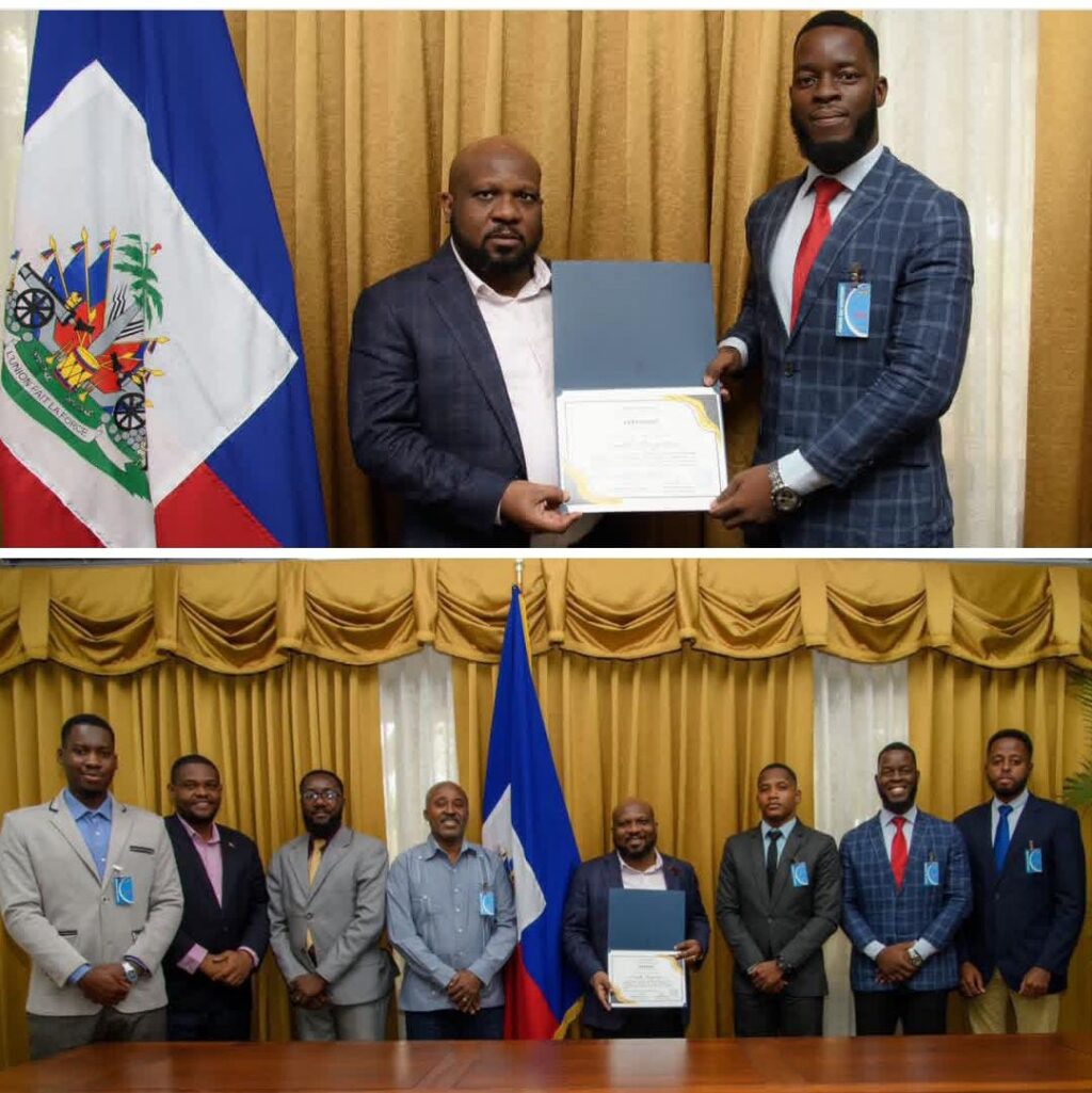 Le Conseiller-Président Smith Augustin a reçu ce vendredi, à la Villa d’Accueil, une délégation de la Fondation STO conduite par son président, Raymond Lerebours. Au cours de cette rencontre, M. Lerebours a remis au Conseiller-Président un certificat le nommant Président d’honneur du programme Challenge des Écoles Citoyennes, en reconnaissance de sa collaboration avec la Fondation.