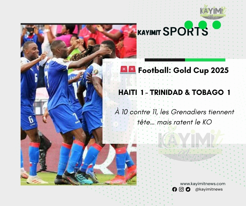 Sur la pelouse brûlante du Shell Energy Stadium à Houston (États-Unis), les Grenadiers ont arraché un match nul 1‑1 face à la Trinité‑et‑Tobago, ce jeudi 19 juin, lors de leur deuxième sortie en phase de groupes de la Gold Cup 2025. Un nul au goût amer, tant la victoire semblait à portée… malgré l’infériorité numérique et un penalty manqué en fin de match.