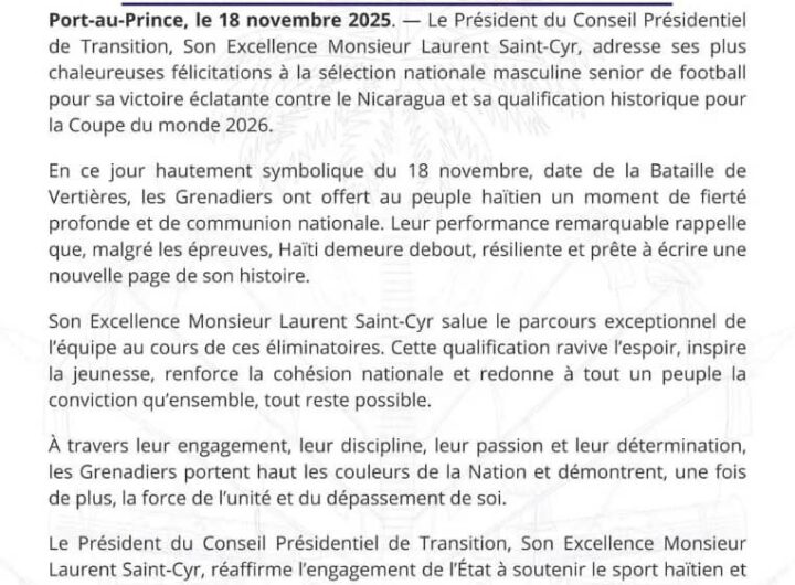 Le Bureau de la Présidence a publié, le 18 novembre 2025, un communiqué saluant la qualification historique...