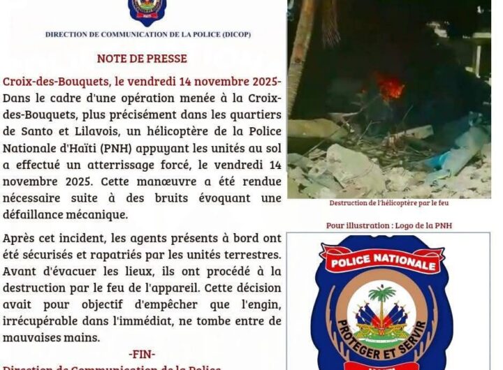 La Police Nationale d’Haïti (PNH) a dressé, à la fin de la journée du vendredi 14 novembre...